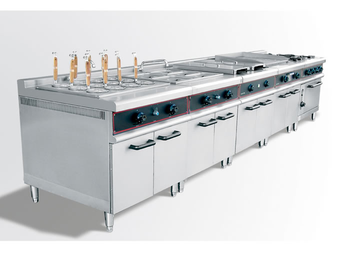 西餐厨房主要分为:西餐烹调主厨房、西餐冷房、西饼房,它们之间由于加工生产的菜式品种不同,其使用厨房设备也不同。西餐厨房分工细致,厨房设备种类繁多,而且用途专一,机械化程度比较高且完善,下面介绍几种常用的西餐厨房设备。